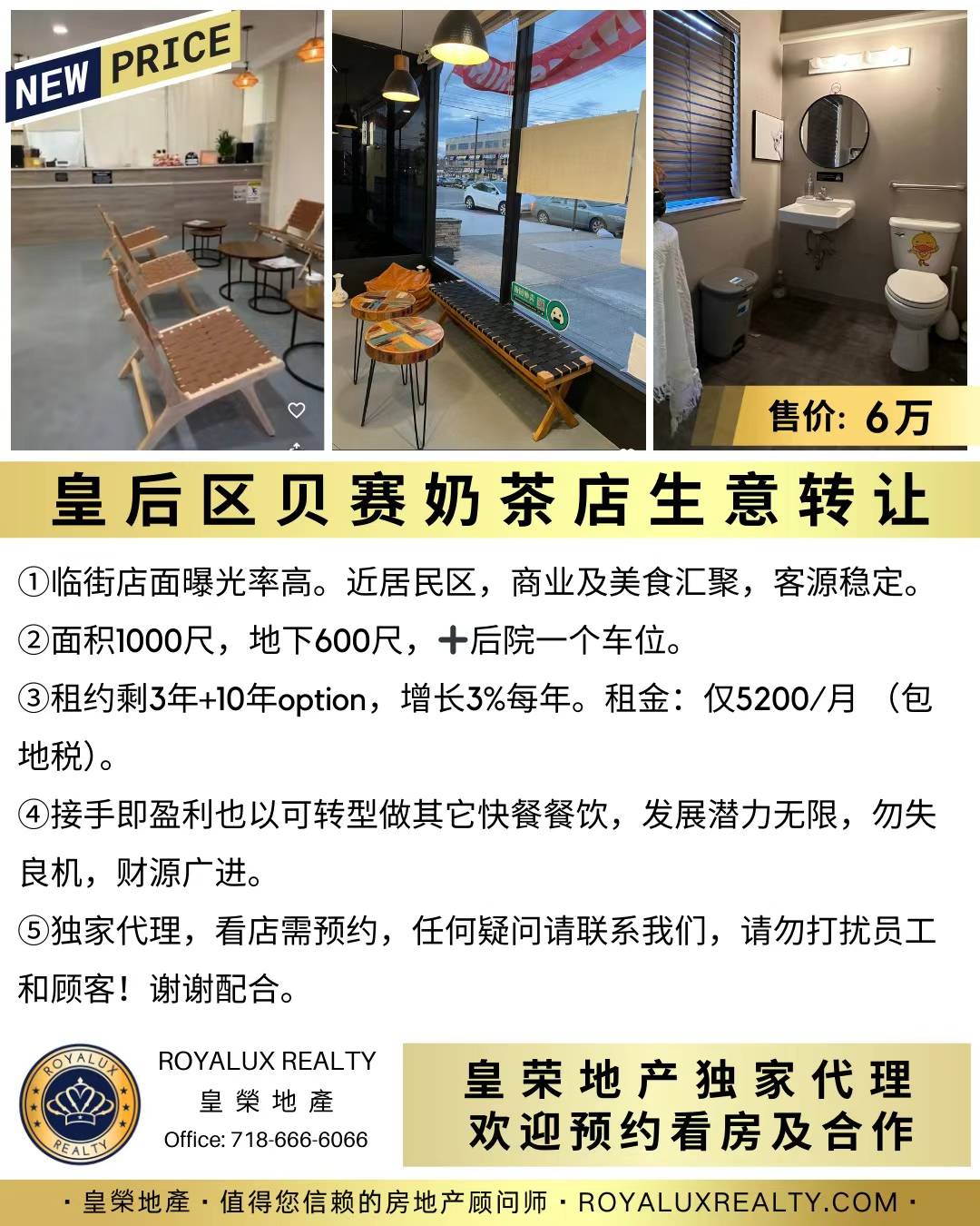 👑皇后区贝赛奶茶店生意转让 | 售价6万纽约生意转让 新上市