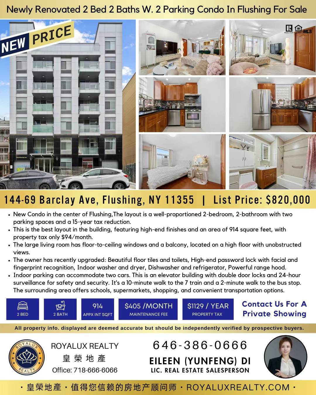 Flushing法拉盛康斗出售Flushing NY Luxury Condo for sale新上市Flushing法拉盛新楼盘出售Flushing New Construction新上市 New Price $82万带俩车位 欢迎合作转发