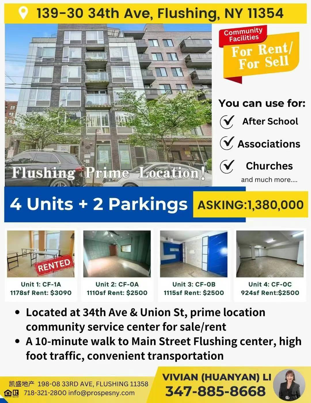 🌟【法拉盛中心社区服务中心】出售/出租📍139-30 34th Ave, Flushing, NY 11354