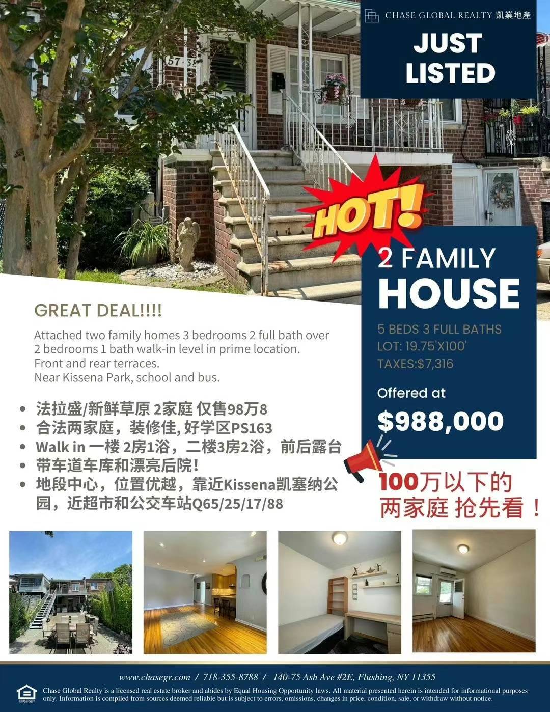 法拉盛/新鲜草原 2家庭 仅售98万8合法两家庭,装修佳!拎包入住!Flushing法拉盛房子出售Flushing NY House for sale新上市