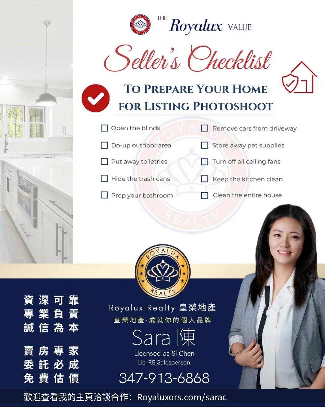 纽约地产经纪 纽约华人房地产公司您在卖房时是否想要您房子的照片能够最大化的吸引买家呢?以下是您在安排拍照前应该先做好的一些准备,让您的房子能够让看到的买家都感兴趣!欢迎联系我了解更多!