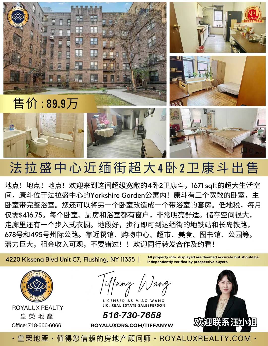 8/12 周一9am统一看,Flushing法拉盛公寓出售 Flushing NY Coop for sale新上市 须预约🎈🎈 👑皇地荣产独家理代好房源