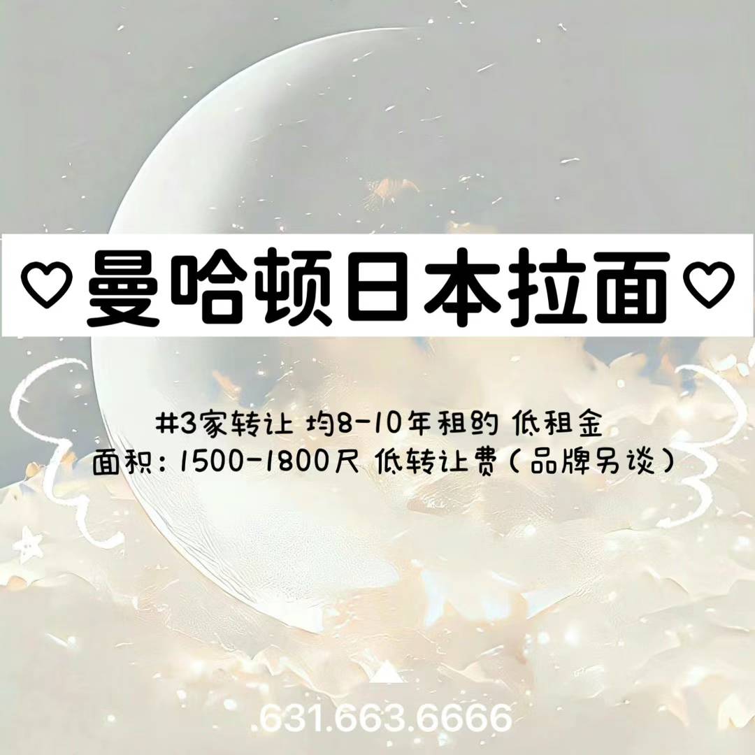 纽约生意转让 新上市纽约拉面网红日本拉面转让旗下三家店租约(不包品牌,想要品牌也可洽谈),房租都很便宜,均有8-10年租约。面积均1500-1800尺。低转让费!🦌正常营业中,请勿打扰员工!需预约看店