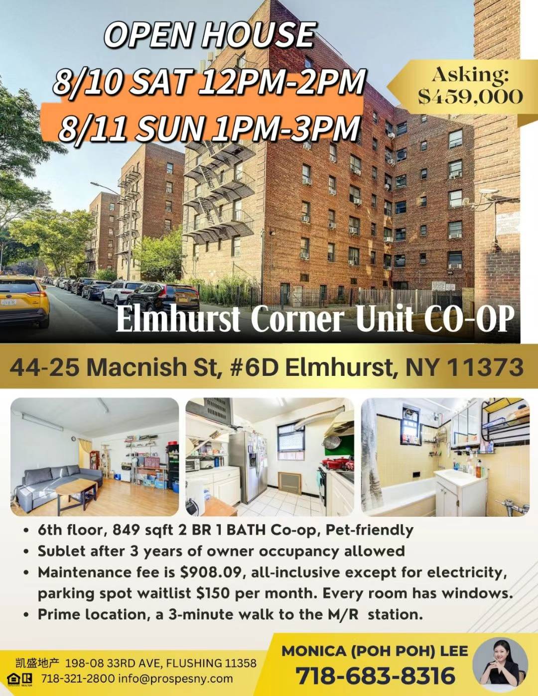 🔵Elmhurst 849尺2房Co-op,宠物友好,自住3年后可以出租