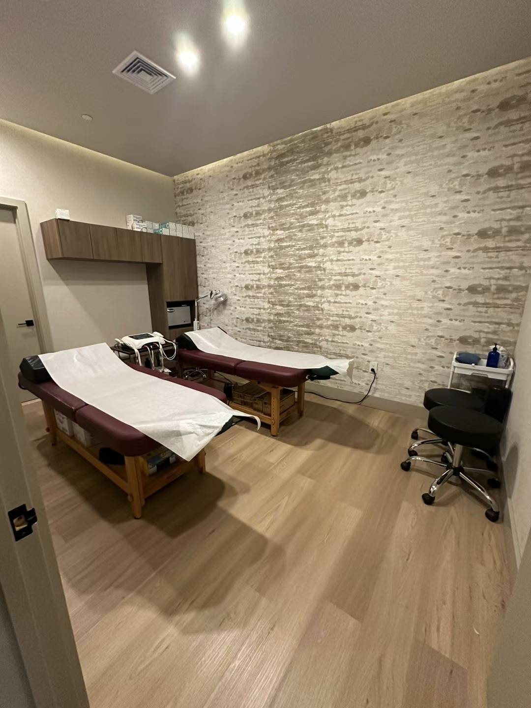 三个双人spa房带卫生间,三个单人诊室,另有医生办公室,员工休息室,杂物间