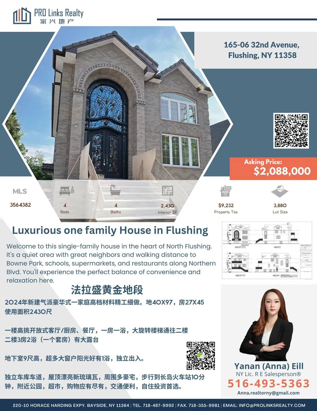 Flushing法拉盛新楼盘出售Flushing New Construction新上市 ❤️最新代理,即将完工,欢迎合作转发🤝❤️法拉盛黄金地段2024年新建气派豪华式一家庭高档材料精工细做。地40X97,房27X45使用面积2430尺尺