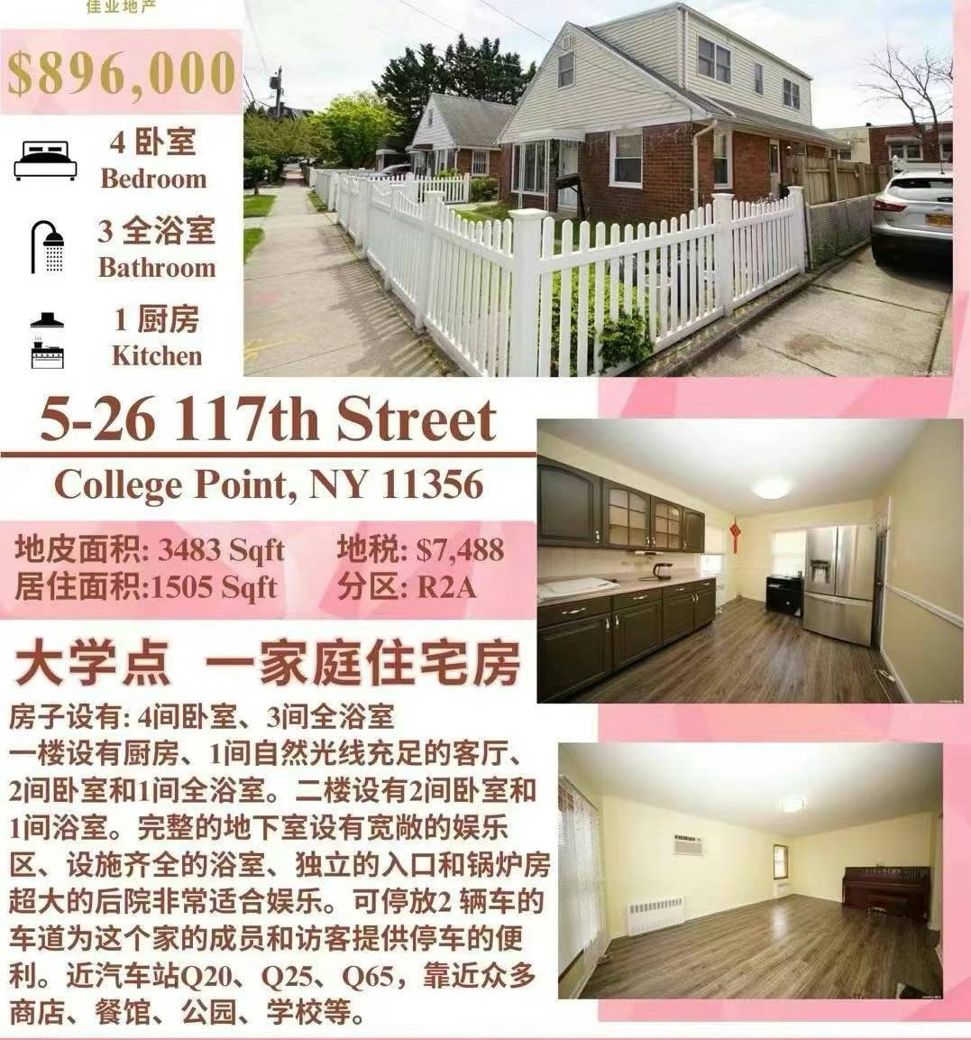 💕 大学点一家庭💕College Point大学点房子出售 College Point NY 新上市 一楼的布局包括一个设施齐全的厨房和采光充足的客厅,以及两间卧室和一间浴室,提供了功能性的生活空间。