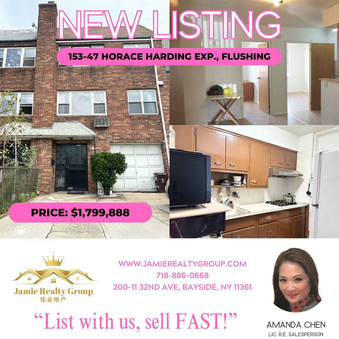 Flushing法拉盛房子出售Flushing NY House for sale🌹新上市法拉盛🌹佳業地產獨家代理,153-47 Horace Harding. Expy 11367近新中美超市地面三層+地下室,少有的連棟磚房合法🌹三家庭🌹