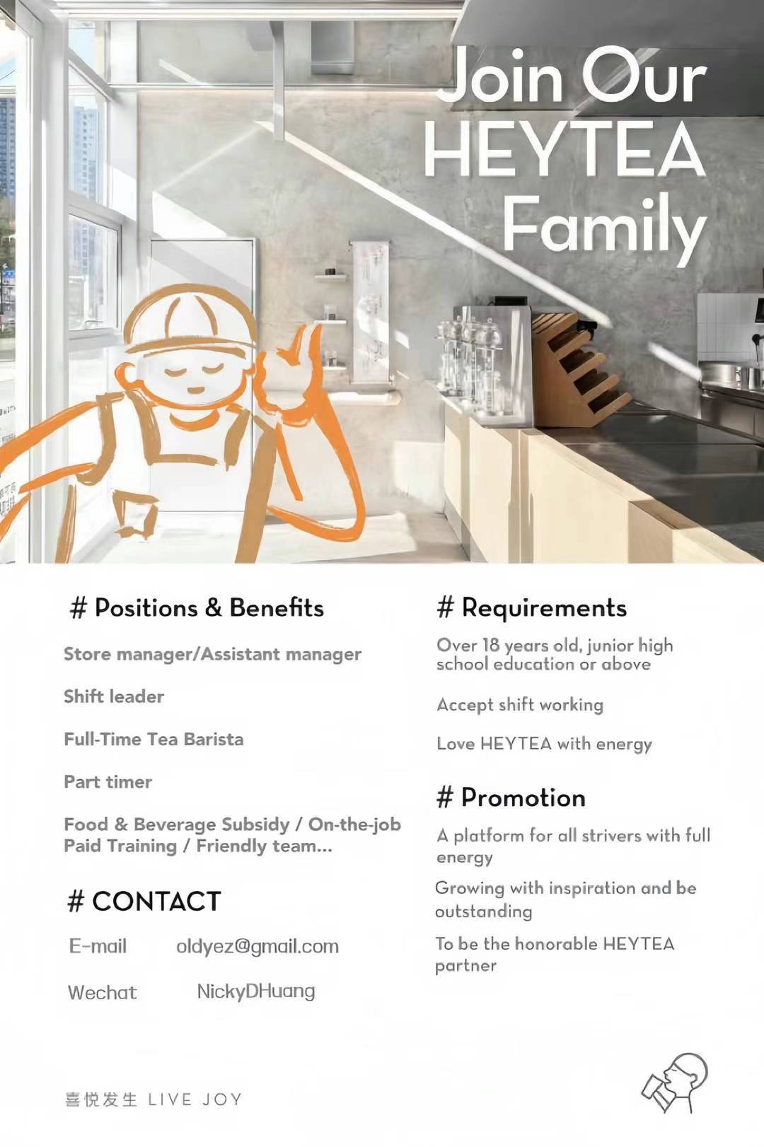 格兰街、86st、八大道喜茶招兵买马,附有带薪休假,欢迎加入,有意微信联系:Nickydhuang🎉347 955 5752