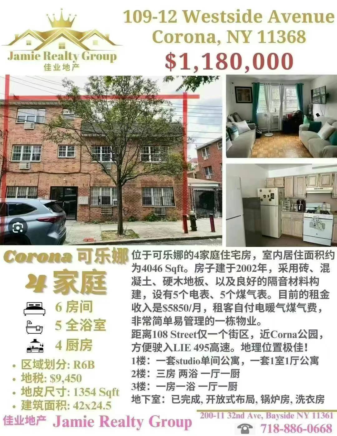 Corona可乐娜房子出售Corona NY新上市可乐娜四家庭住宅 - 仅售$1,180,000