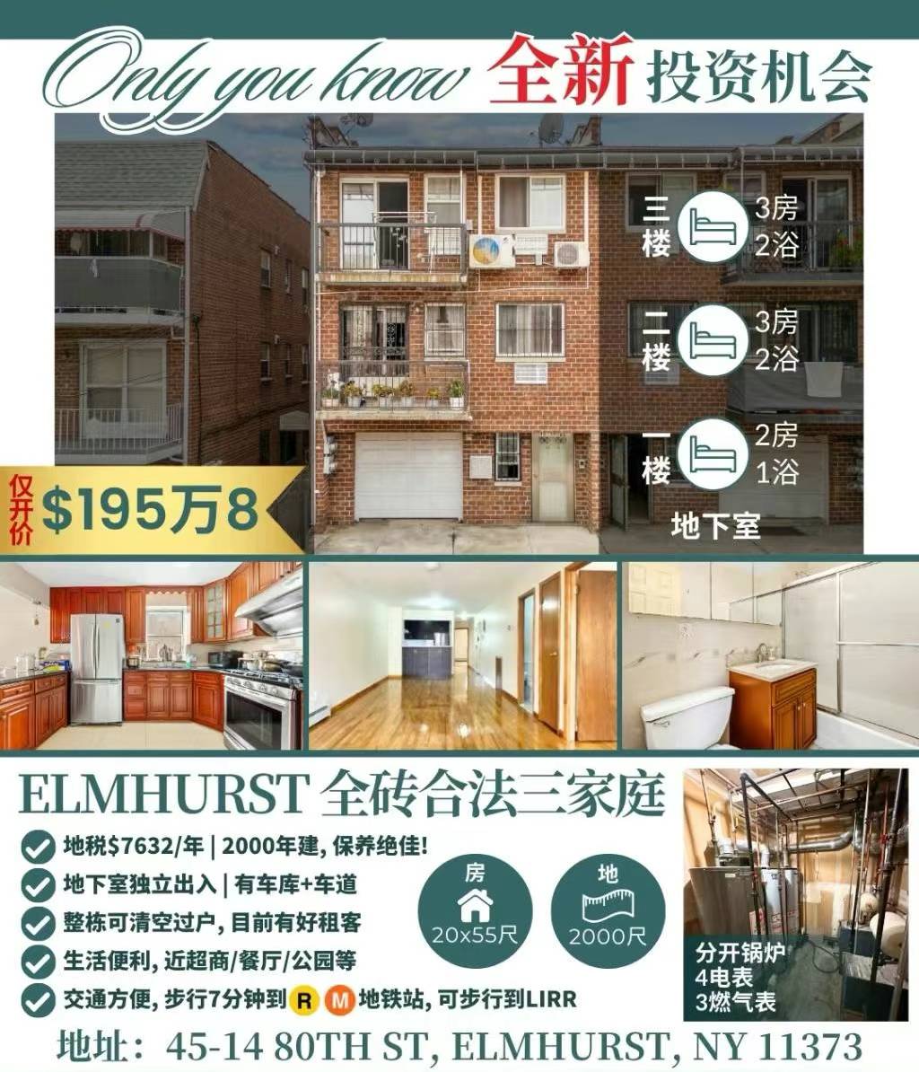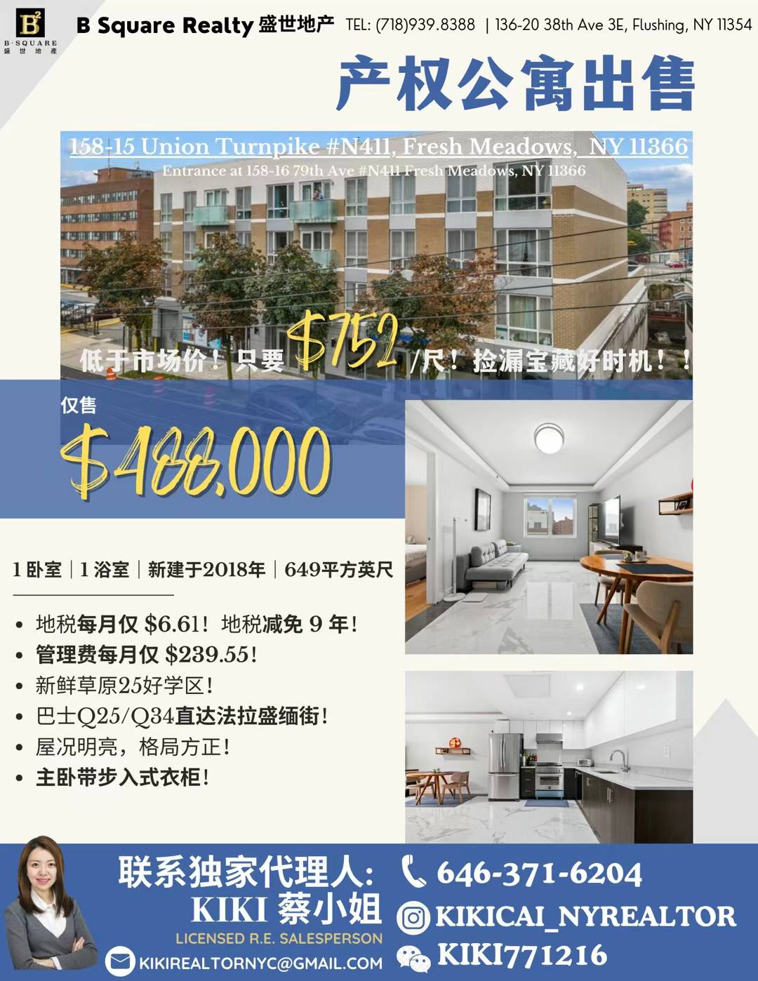 👍低於市場價!!每尺僅$752!Fresh meadows新鲜草原房子出售 Fresh meadows NY 新上市 新鮮草原25學區一房一浴公寓出售,享受便利生活:出門即是公園、餐廳、購物中心,近St John大學,公交直達法拉盛緬街,坐北朝南
