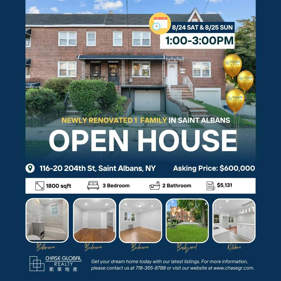 🎈8/24-8/25🎈Open House周末地产公展 纽约经纪独家代理好房源 纽约地产经纪 纽约华人房地产公司