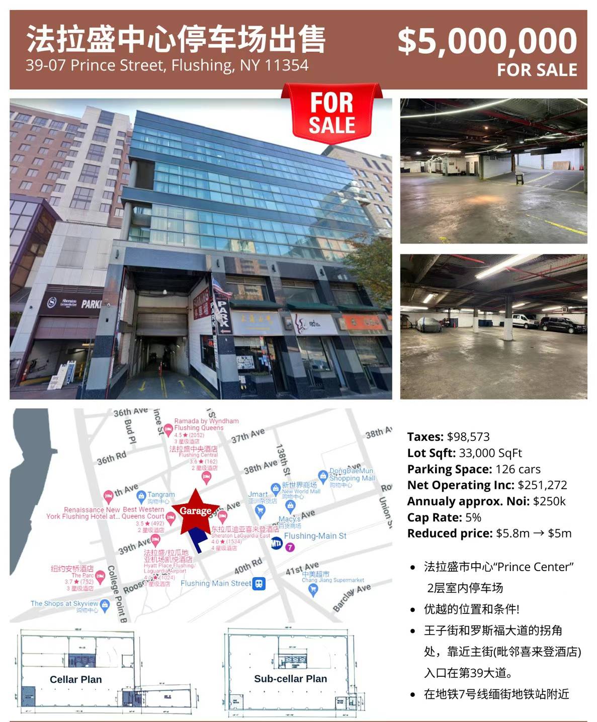 法拉盛中心停车场出售大降价: $5.8m → $5m纽约商业地产出售租新上市
