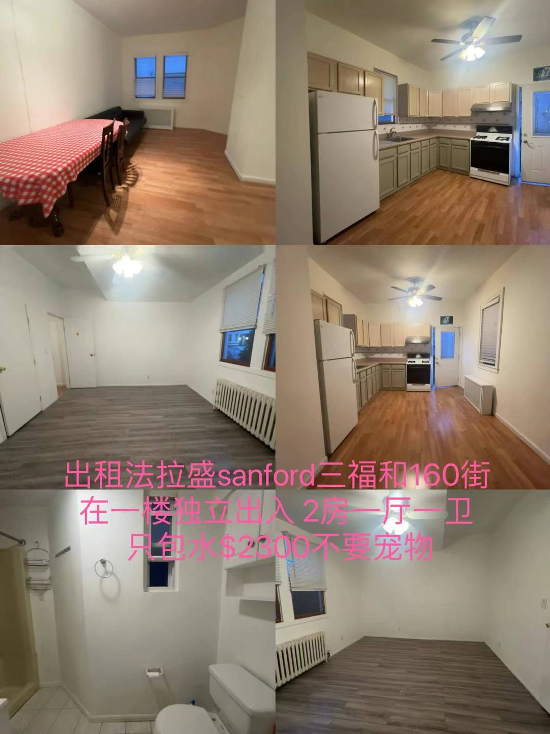 Flushing法拉盛房屋出租 新上市出租:法拉盛sanford三福和160街 在一楼独立出入 2房一厅一卫 只包水$2300不要宠物 有巴士到缅街 近长岛火车站 步行8分钟 近北方大道华人超市 餐厅等等 非常方便生活 说中文 ~欢迎合作约看房子 6463937424 melody陈