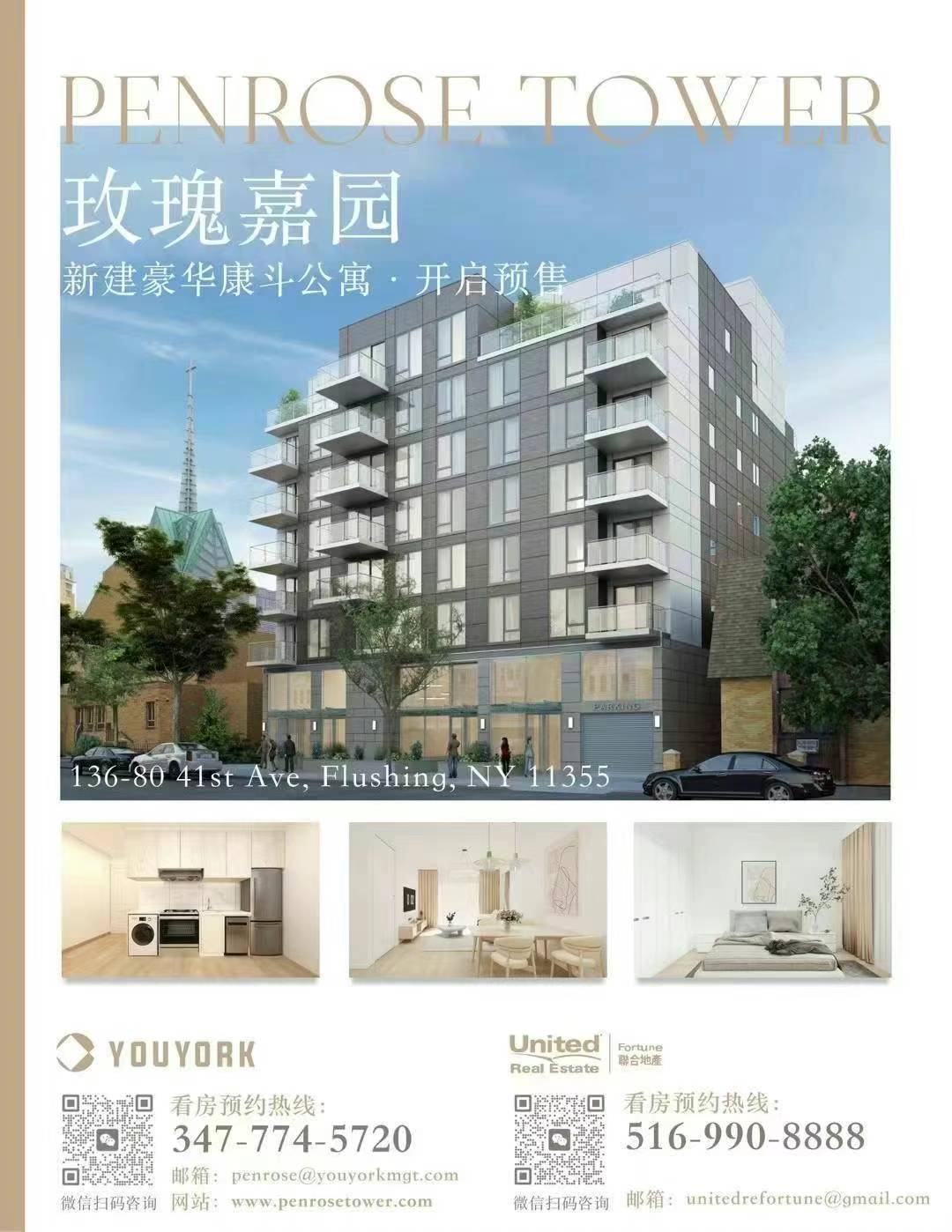 🔥法拉盛主街精品公寓Penrose Tower预售火热开启,华人投资安居首☝选