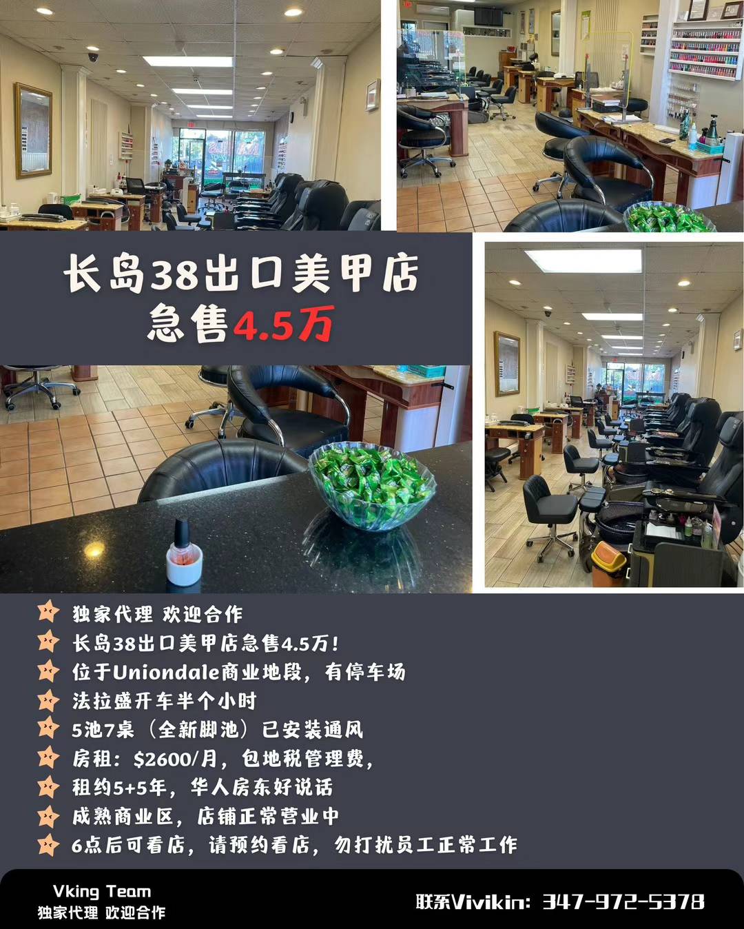 长岛38出口美甲店急售4.5万!