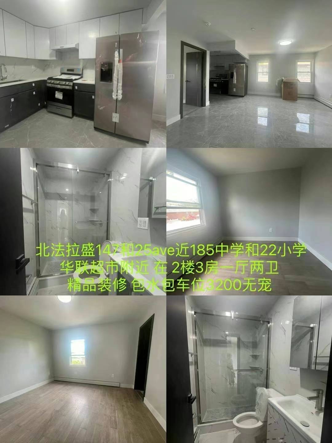 🎉最新出租🎉🎈2房2卫🎈法拉盛中心位置41st 和Bowne st附近。出租~ 北法拉盛 147和25ave 近185学校和ps22小学华联超市在 2楼3房一厅两卫 精品装修 包水包车位3200 随时看房子。 9月初入住。 说中文