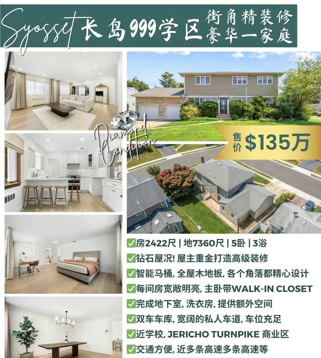 🆕长岛Syosset 999学区高级感装修街角一家庭Long Island长岛房子出售 Long Island NY新上市长岛房屋出售
