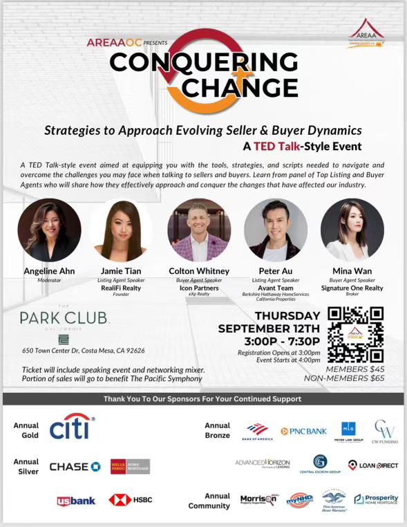 非常开心受邀参加由美国亚裔地产协会主办的地产界的【TED】大会演说论坛做演讲嘉宾,和各位地产精英们交流。Conquering Change,拥抱变化,把握今天。没有什么行业是100%安全,唯有把握当下,顺势而为,过好现在的每一个时刻,完成手上的每一件工作才是最重要的!欢迎来访捧场