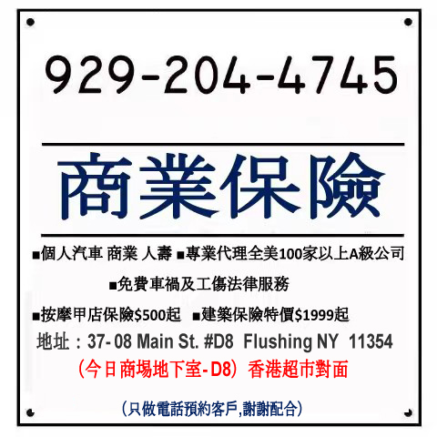 法拉盛台一保險紐約專業的保險經紀公司,二十年以上保險經驗;紐約 新澤西 康州 賓州保險執照 誠信 專業 資深保險專家為您把關 !