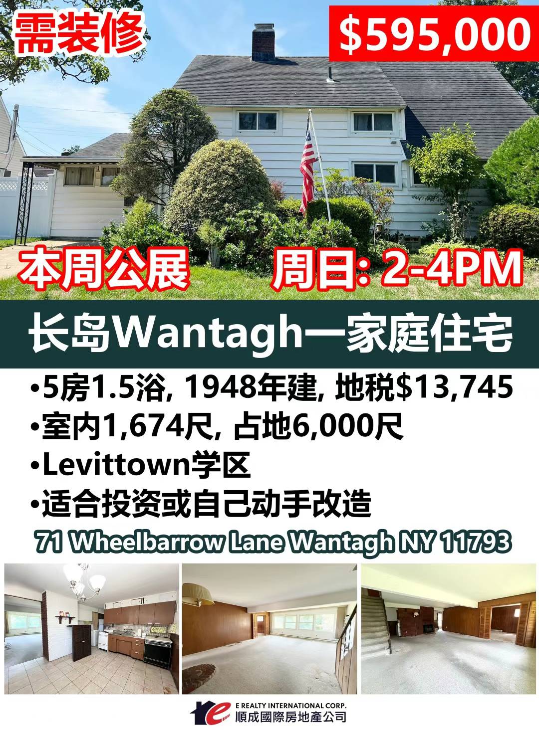 Long Island长岛房子出售 Long Island NY新上市长岛房屋出售今天公展, 周日: 2-4PM🔥长岛Wantagh一家庭住宅,