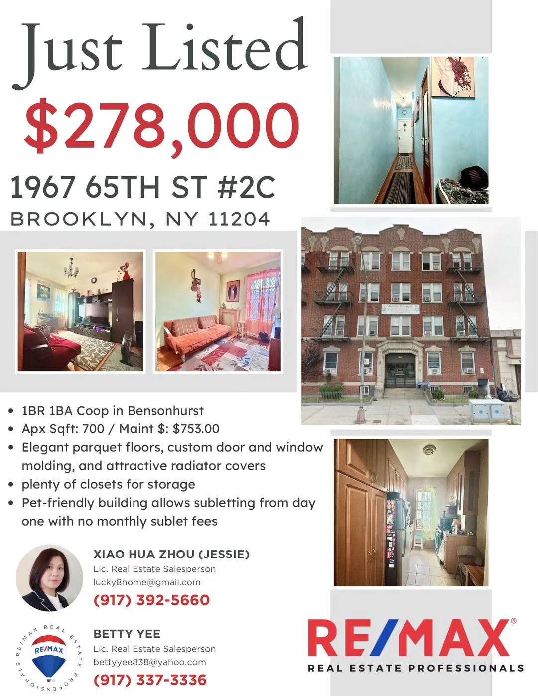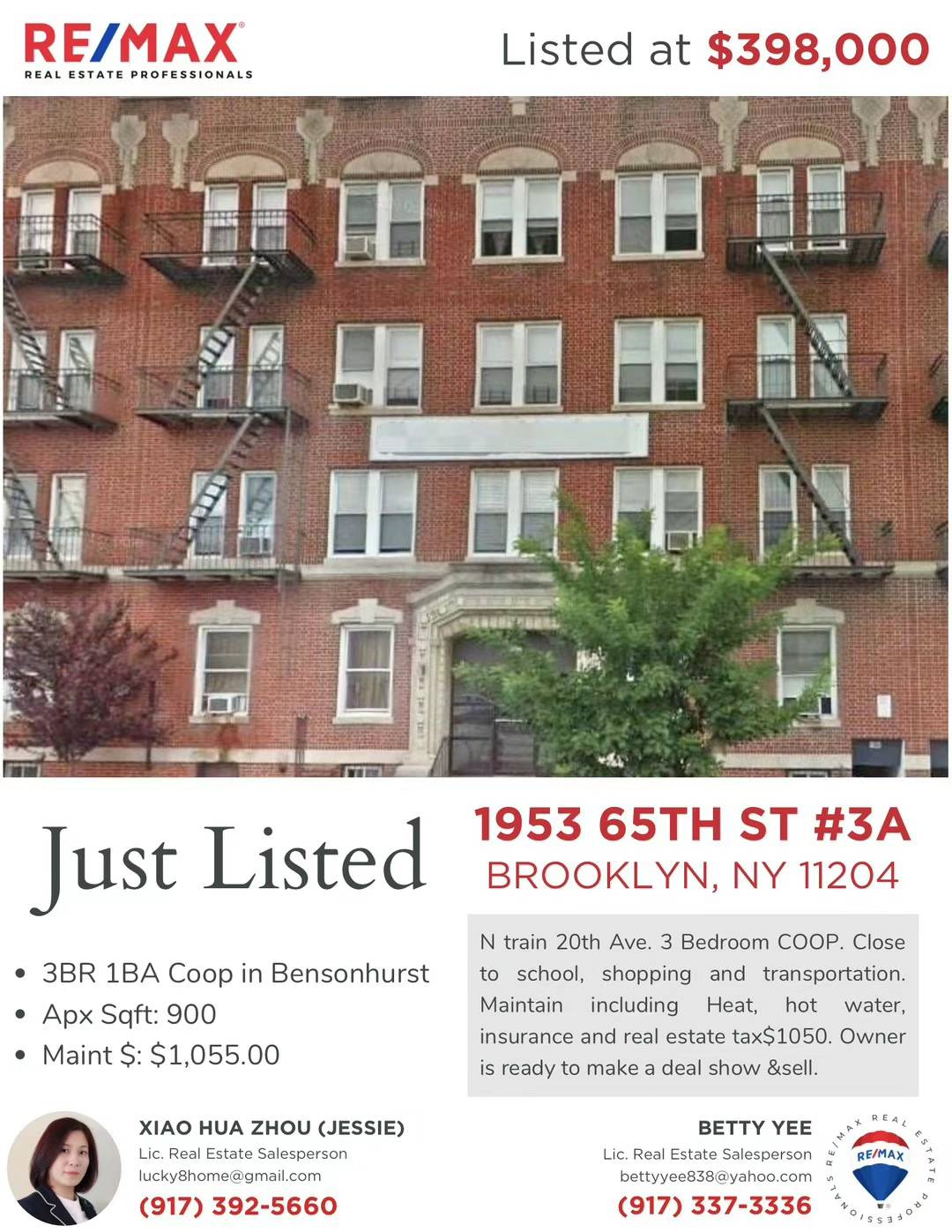 Brooklyn布鲁克林房子出售 Brooklyn NY布碌仑新上市房屋出售新上市公寓楼,1房和3房,20大道65街,中心地段,交通方便(一街口N车)