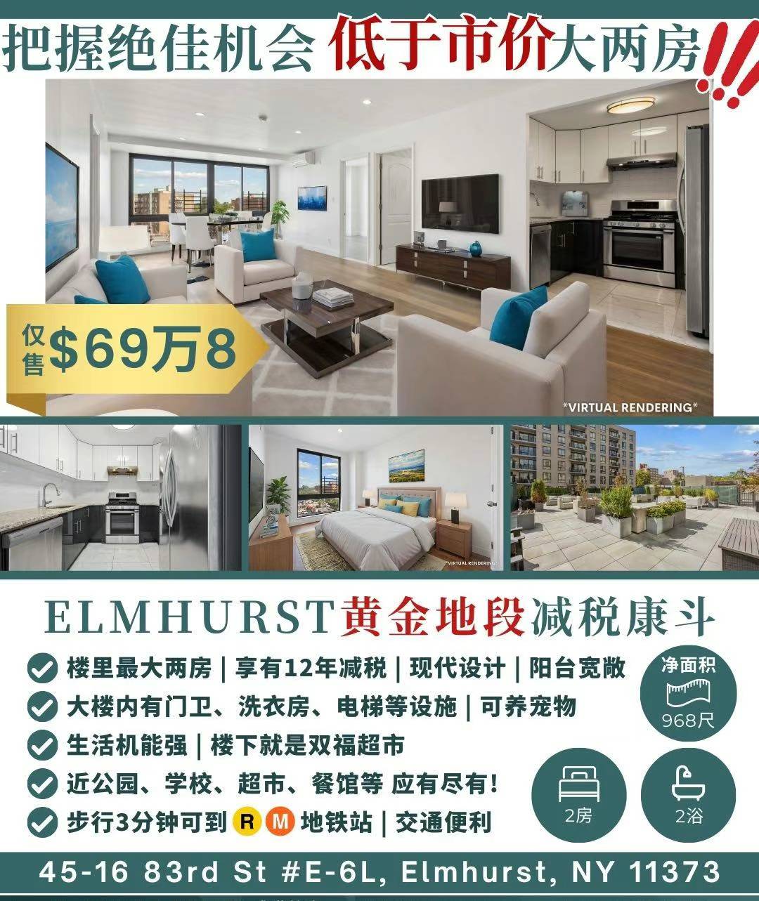Elmhurst艾姆赫斯特房子出售Elmhurst NY新上市艾姆赫斯特房屋出售把握绝佳机会低于市价大两房仅售$69万8