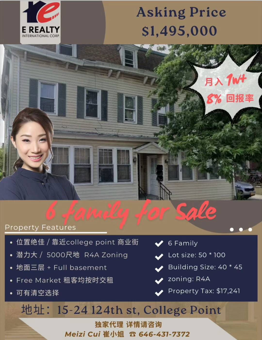 ✨回报率8%💸 - 仅售💰149.5W❗️College Point大学点房子出售 College Point NY 新上市大学点房屋出售 大学点六家庭巨无霸-