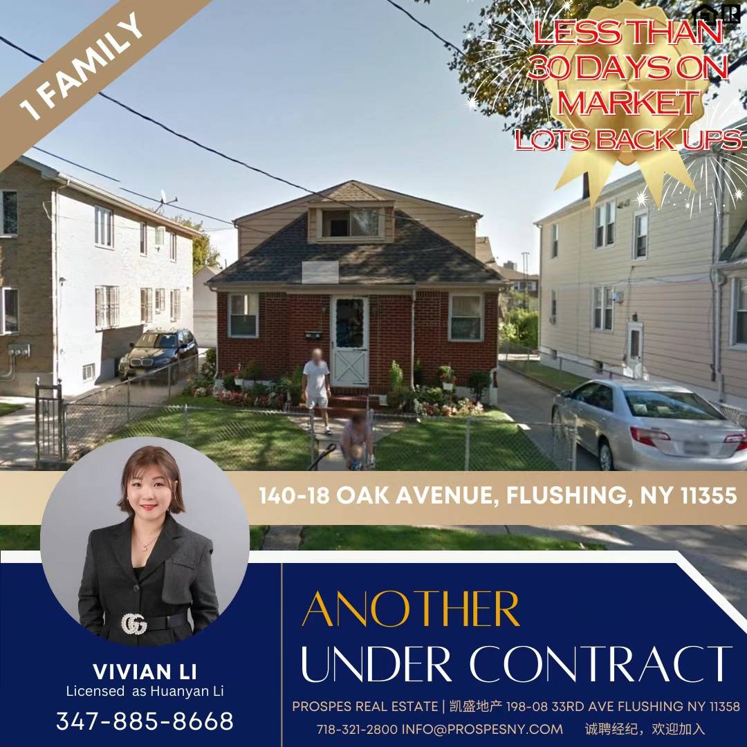 💪🏼💪🏼感谢我们的卖家选择凯盛经纪Vivian Li独家代理他位于法拉盛的1家庭!Vivian认真负责,专业可靠,超过叫价30天内顺利进合同!