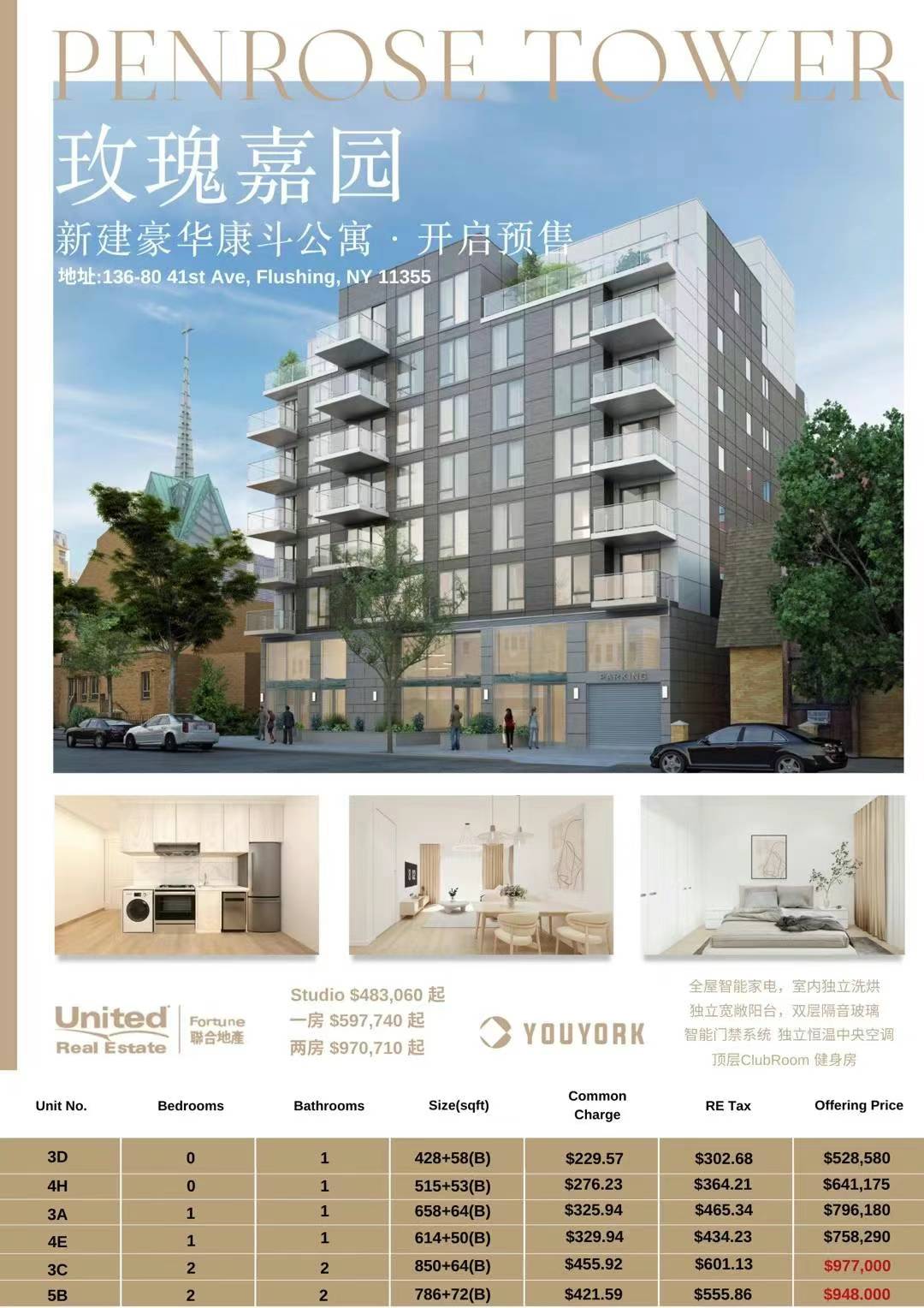 🔥法拉盛主街精品公寓Penrose Tower预售火热开启,华人投资安居首☝选