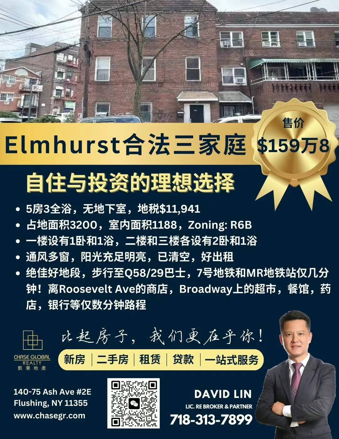 Elmhurst艾姆赫斯特房子出售Elmhurst NY新上市艾姆赫斯特房屋出售👏Elmhurst合法三家庭新上市 仅售$159万8 好机会