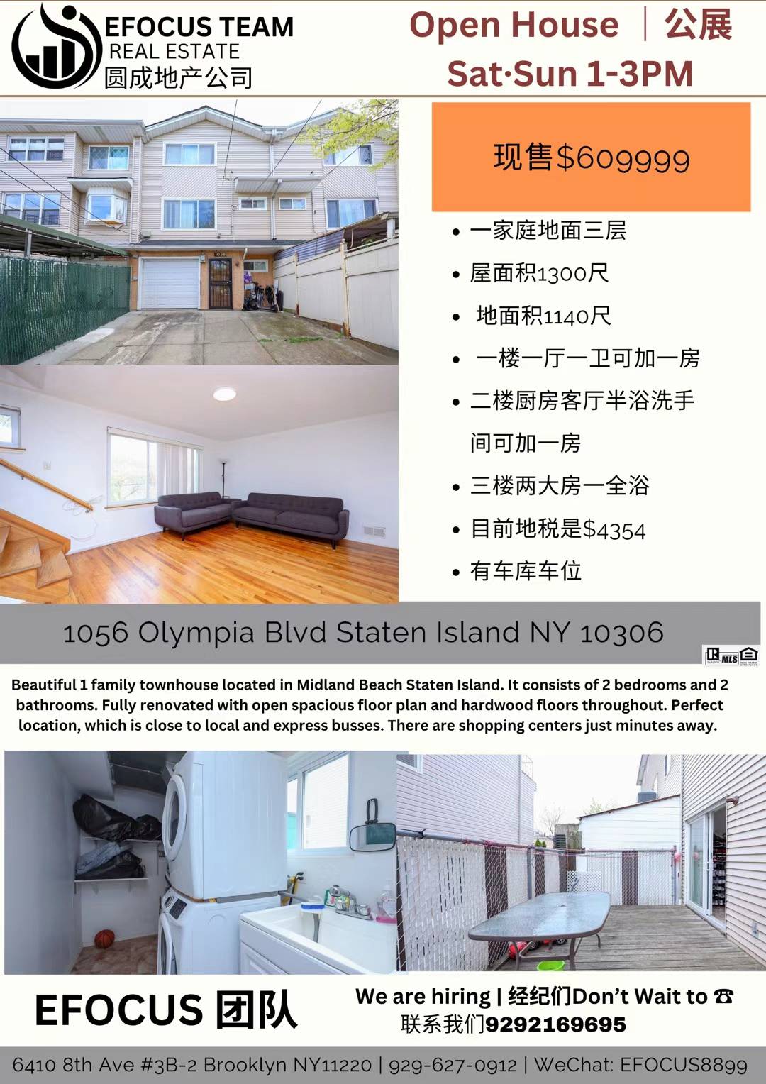 史登岛10306🔥热区域,一家庭地面三层拎包即可入住,两房两浴可改四房+大客厅+车库+中央空调简约大气风格,总面积1300尺,交通便利近Hyland blvd, A学校,近餐馆,超市,欢迎🈴️作,预约看房联系EFOCUS团队9292169695