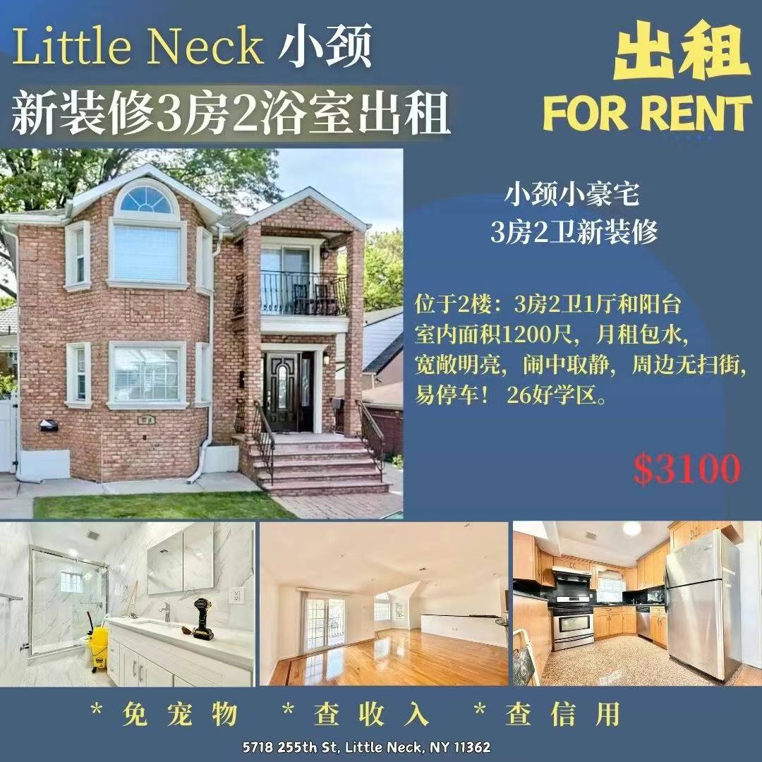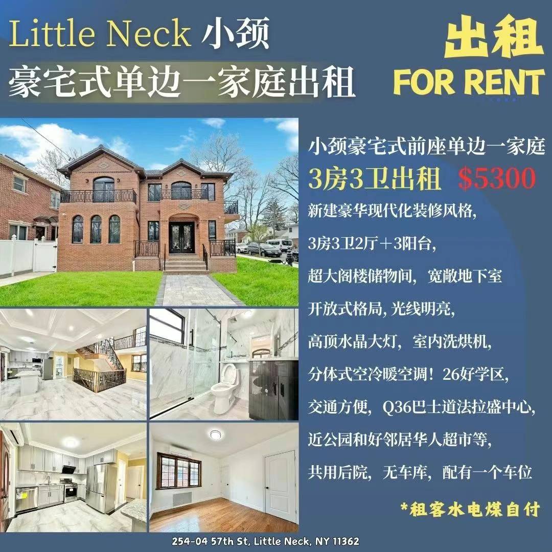Little Neck 小颈房子出租 新上市小颈房屋出租