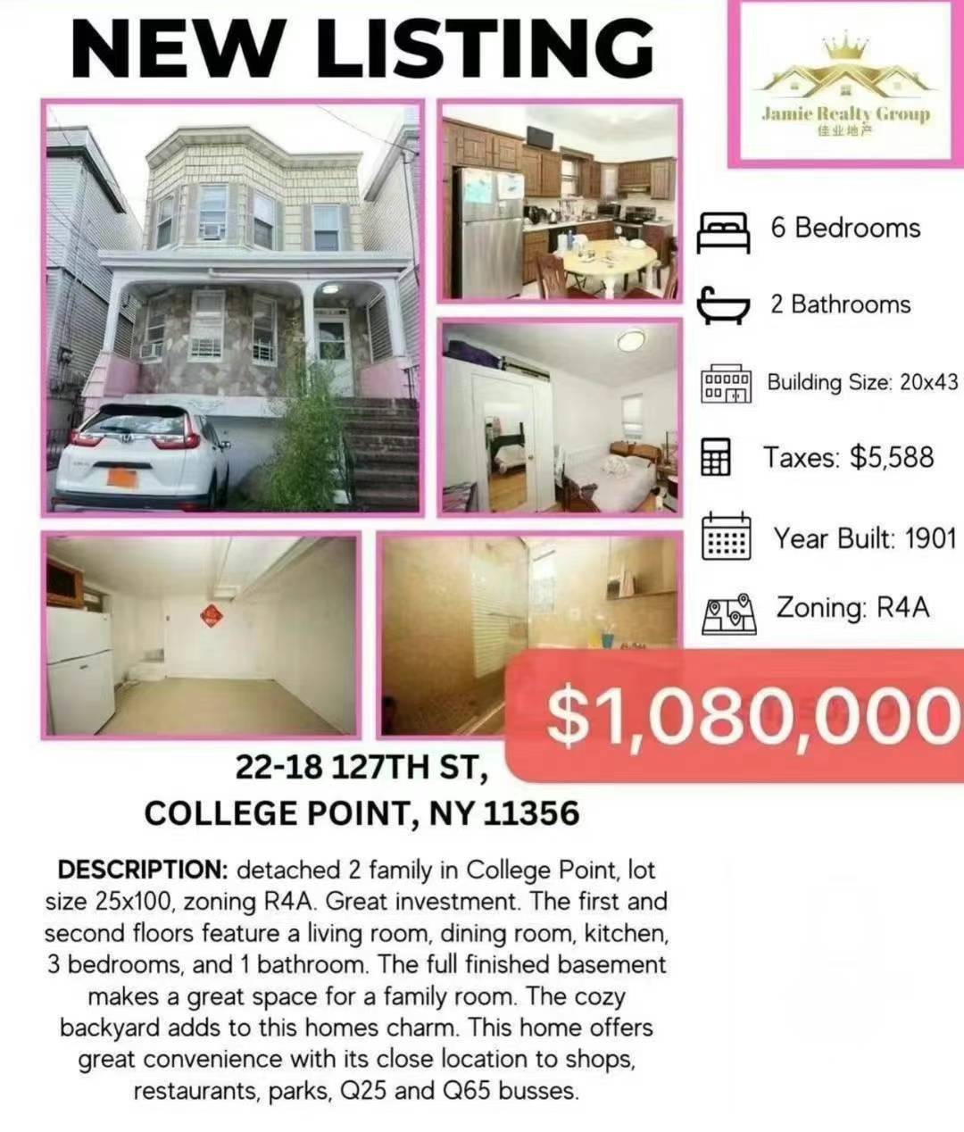 大学点的两家庭College Point大学点房子出售 College Point NY 新上市大学点房屋出售