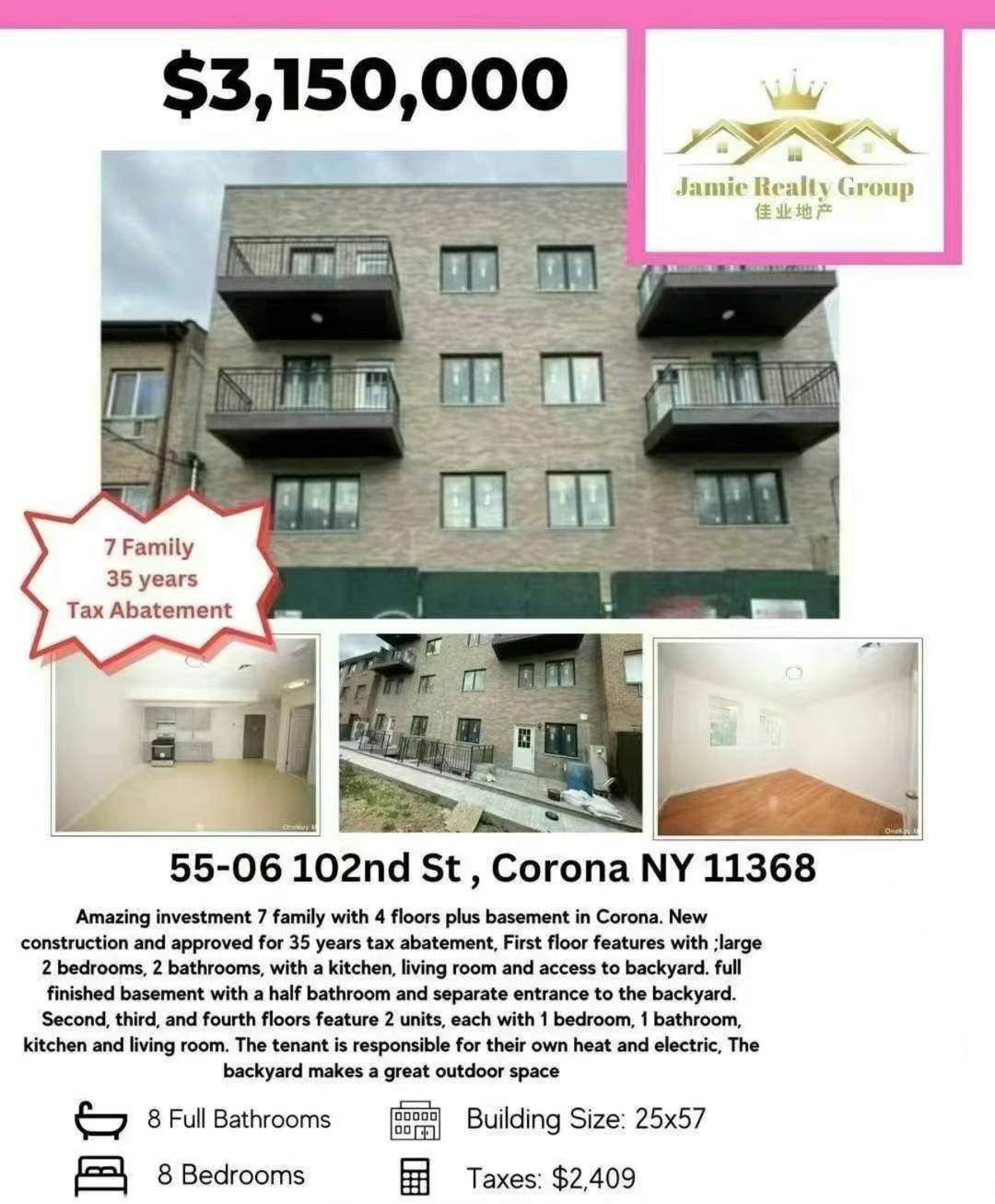 Corona可乐娜房子出售Corona NY新上市可乐娜房屋出售🎉全新7家庭🎉 35年减税