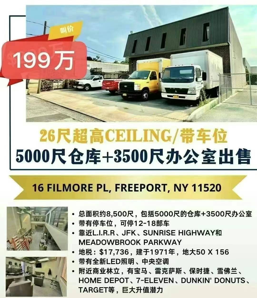 🌟【长岛5000尺仓库+3500尺办公室】出售🌟