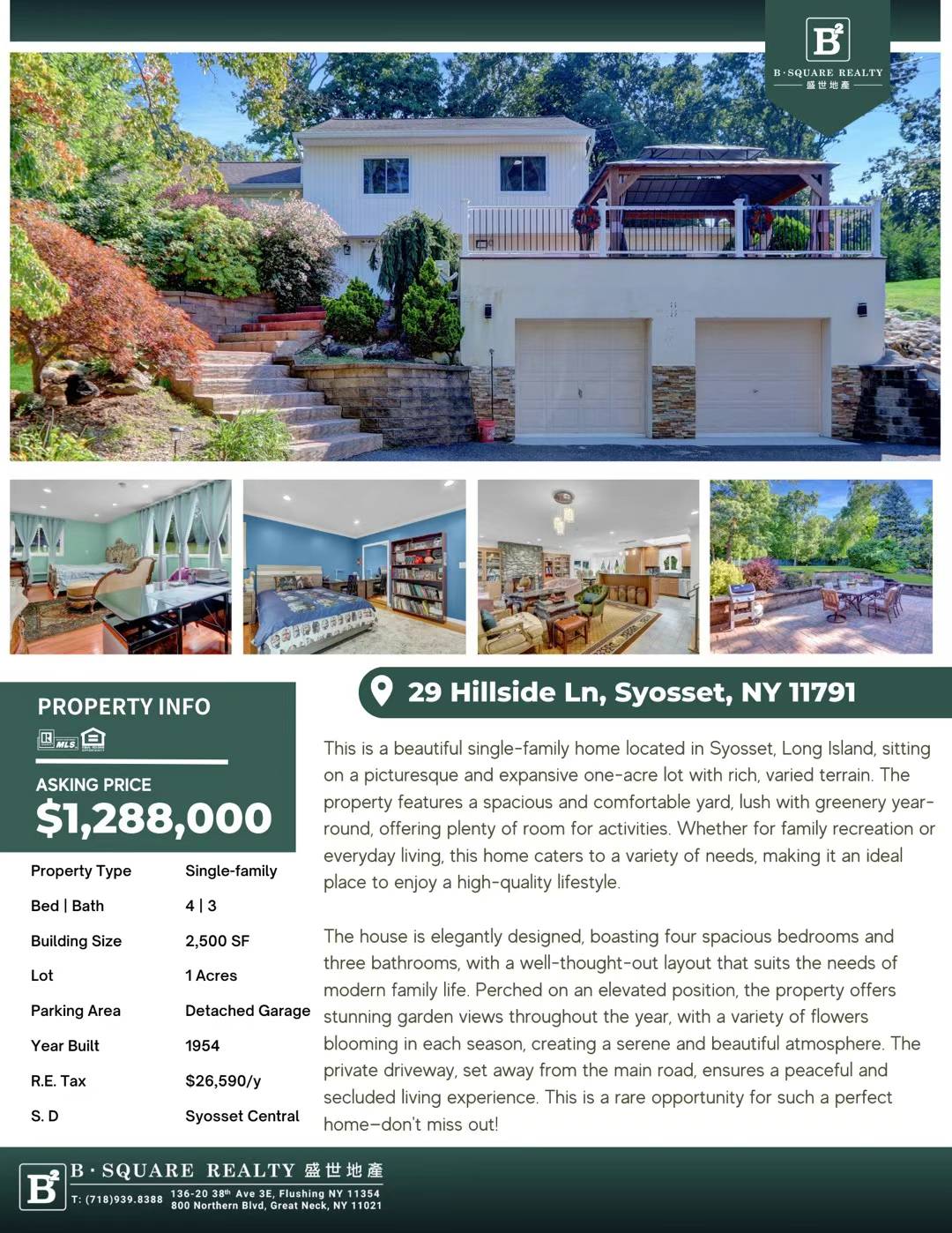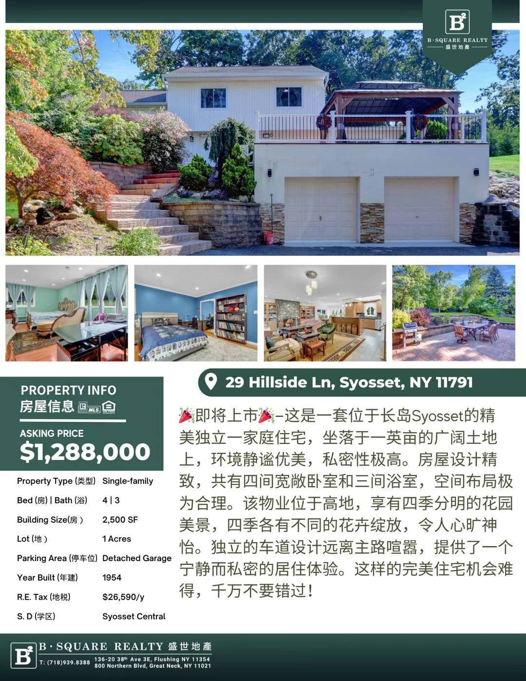 Long Island Syosset NY 长岛塞奥瑟房子出售Long Island NY新上市长岛塞奥瑟房屋出售长岛Syosset的精美独立一家庭住地址📍29 Hillside Ln, Syosset, NY11791