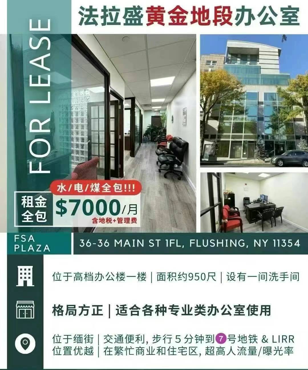 法拉盛办公室出租 新上市法拉盛缅街一楼门面办公室
