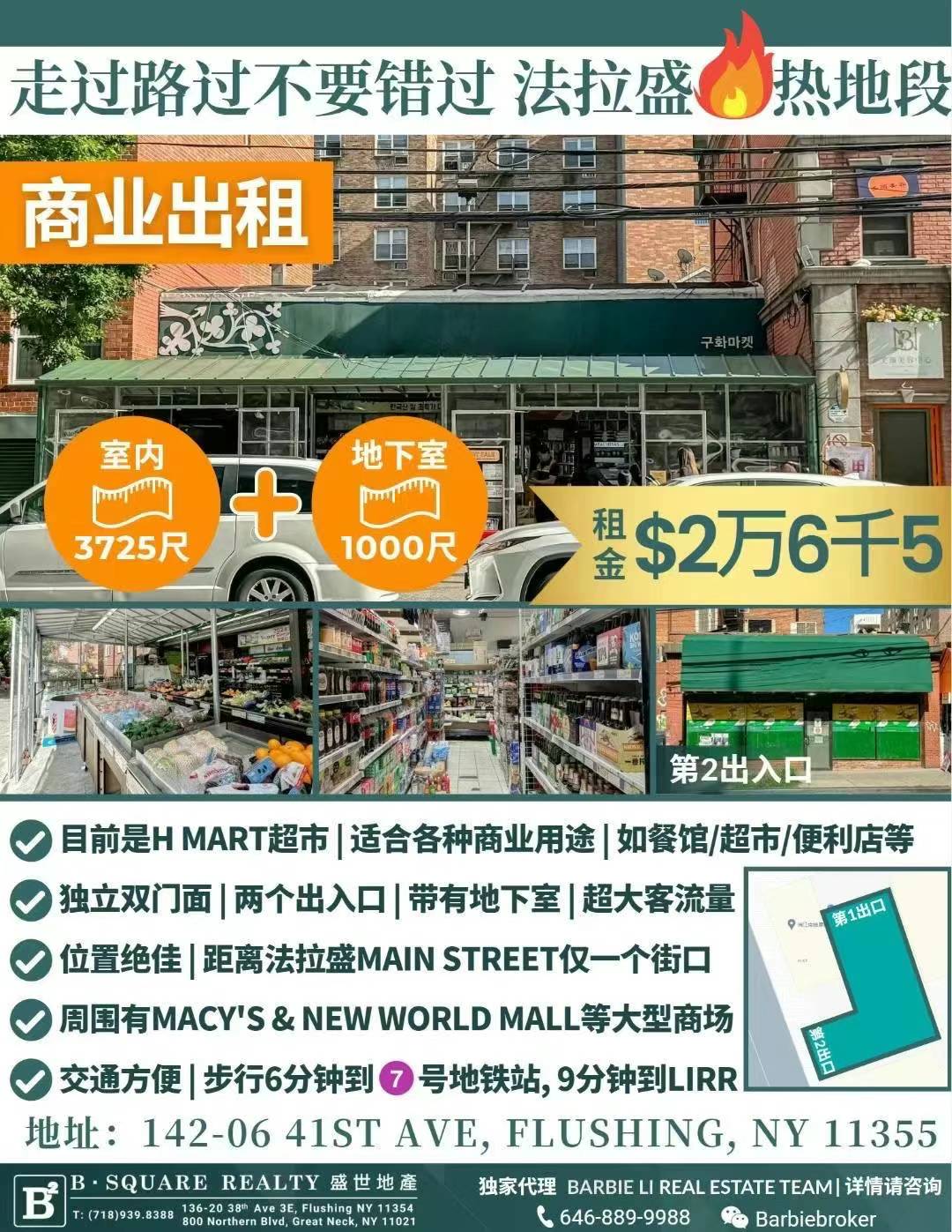 法拉盛商业地产出租 新上市法拉盛稀缺独立门面商业招租