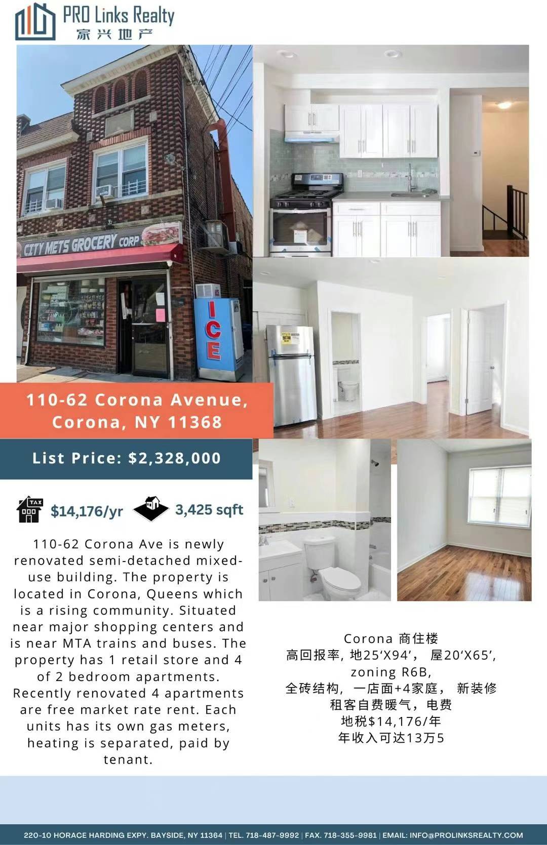 Corona可乐娜房子出售Corona NY新上市可乐娜房屋出售🎉Corona 商住楼🎉