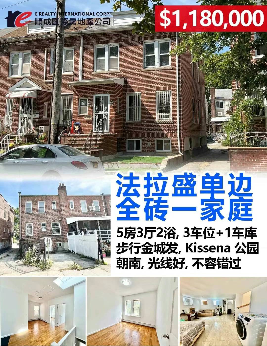 🎉法拉盛新上市單邊全磚1 家庭Flushing法拉盛房子出售Flushing NY House for sale新上市法拉盛房屋出售 2 車位另加1 車庫售价:$1,180,000