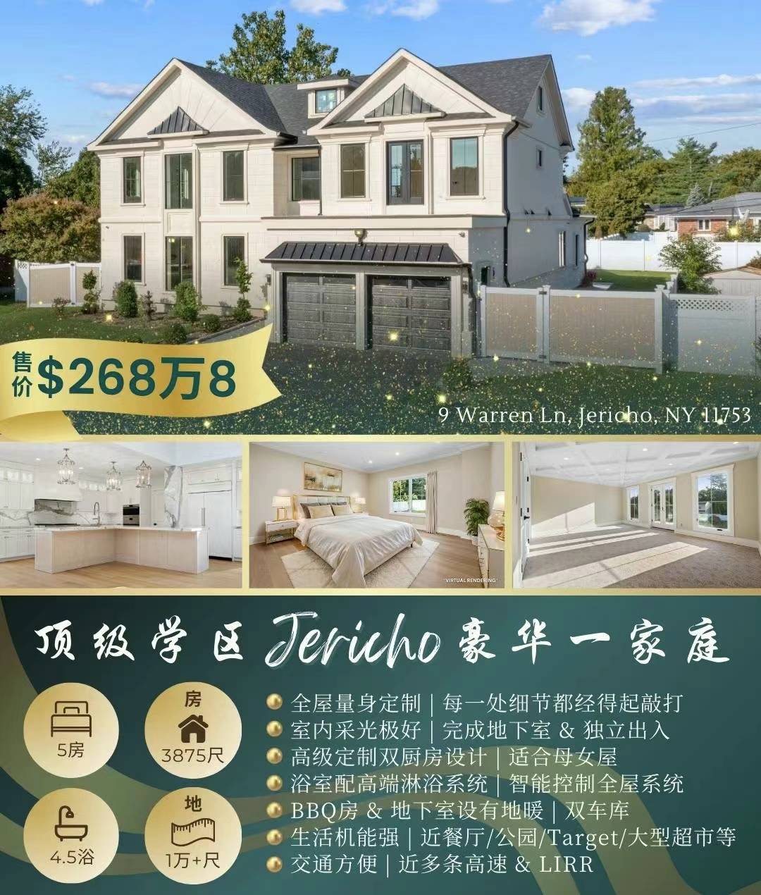 Long Island Jericho长岛杰里科房子出售Long Island NY新上市长岛杰里科房屋出售Ⓜ️今天下午可以看 需预约🔥顶级打造Jericho豪宅低地税