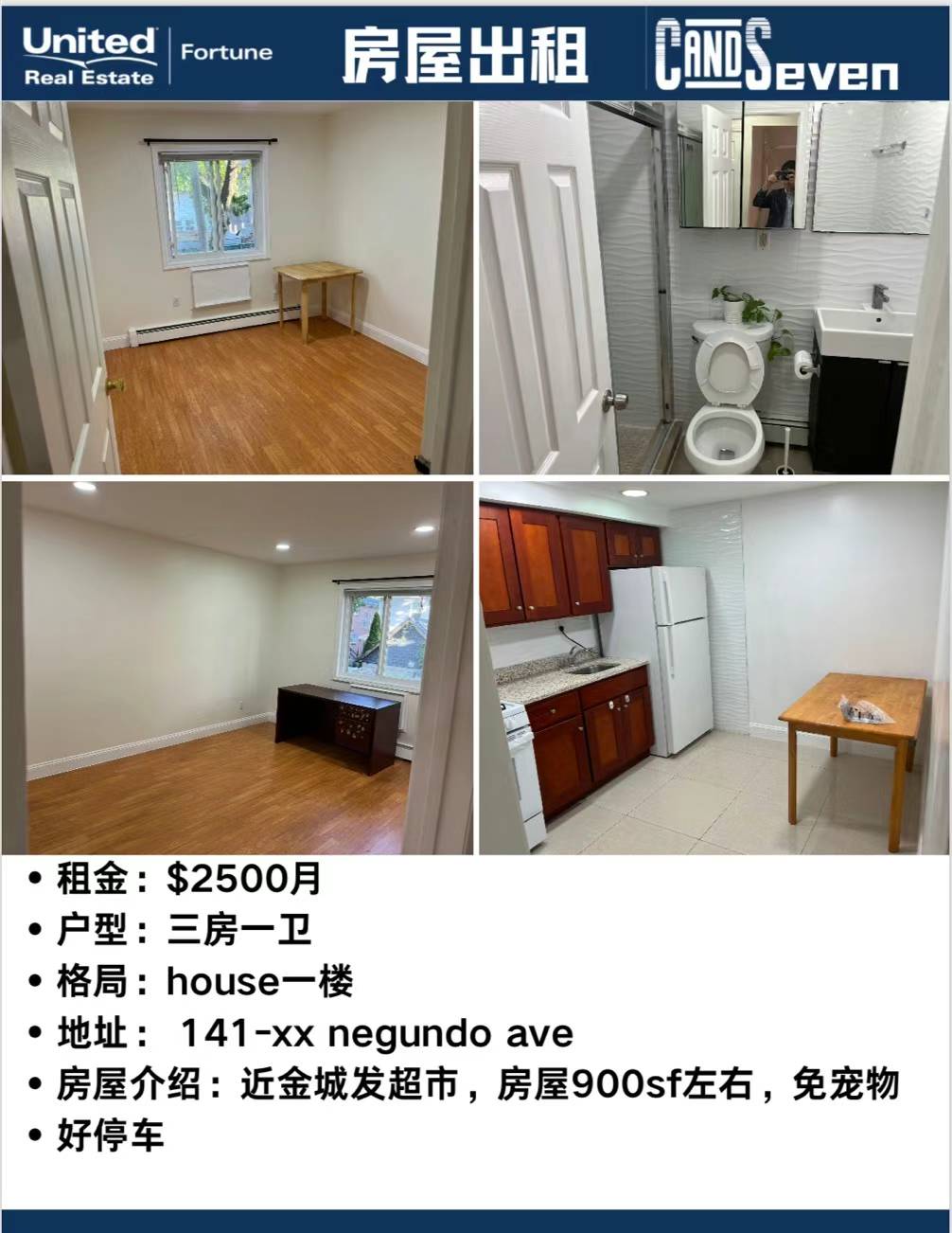 Flushing法拉盛房屋出租Flushing NY House for rent新上市法拉盛房子出租近金城发,900尺,3房1卫,租金2500免宠物 人数最好4人以内