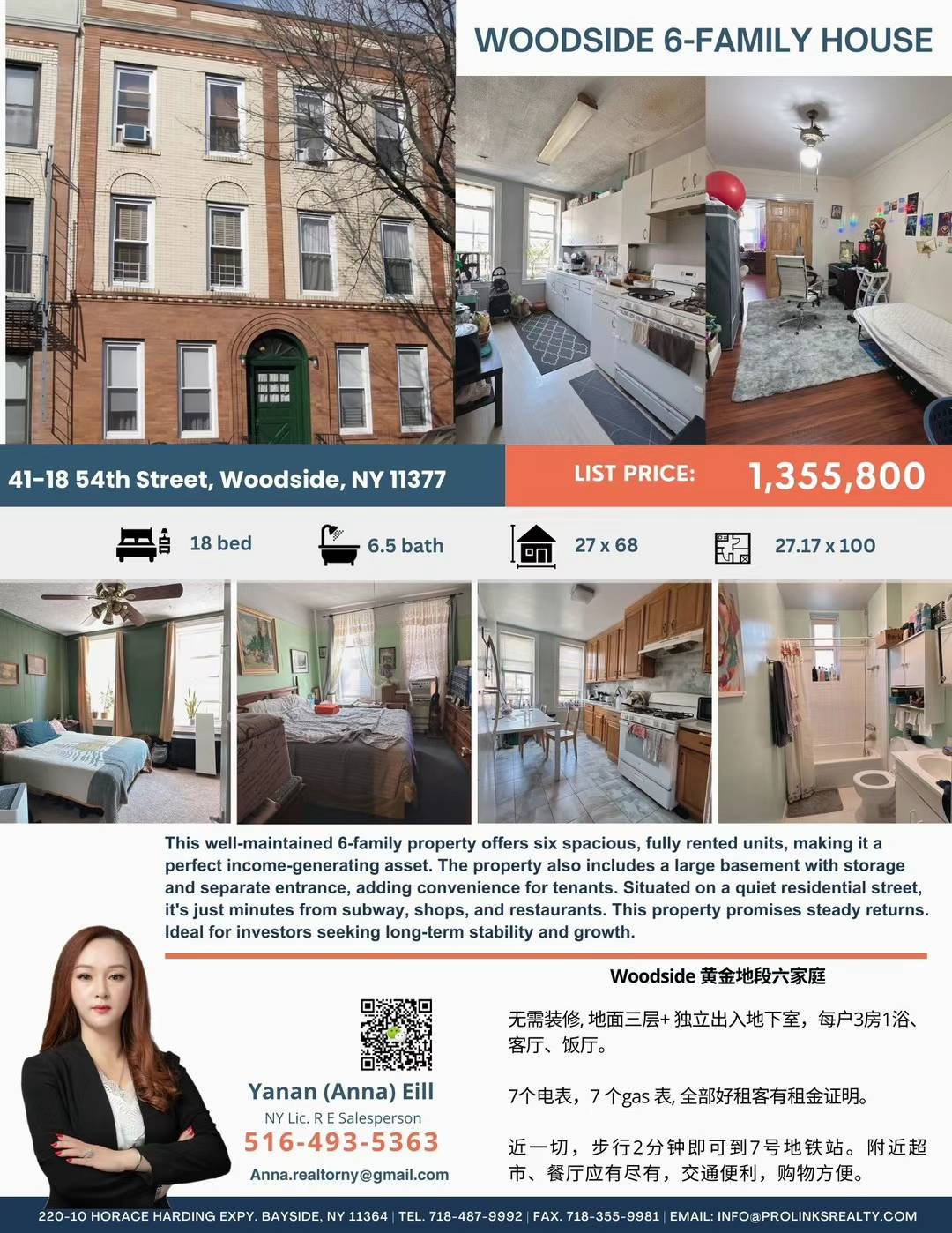 Woodside Queens NY 皇后区木边房子出售Woodside Queens NY新上市木边房屋出售WOODSIDE 6-FAMILY HOUSE
