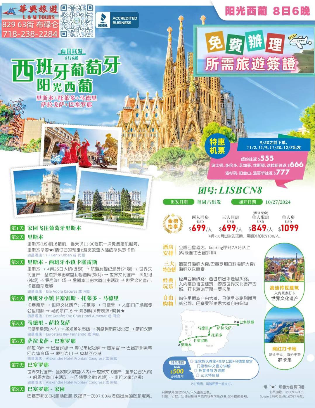 4月-10月为当地旅游旺季,在此期间出发的班期需额外加收$100/人。