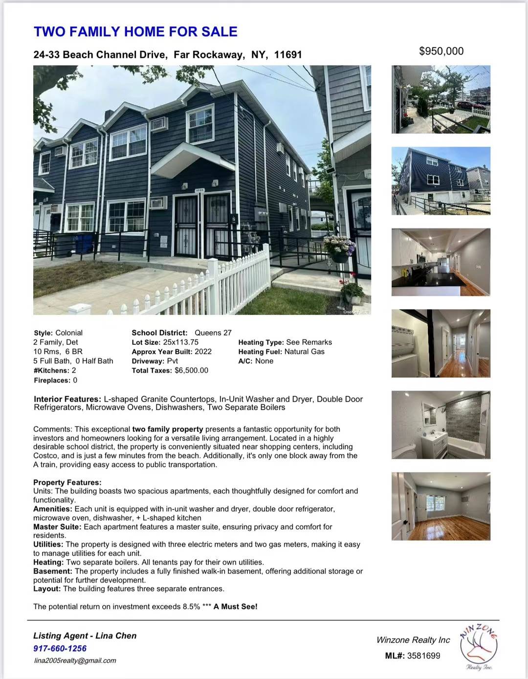 Far Rockaway单边大型新建两家庭🏆难得9分学区!建于2022年!