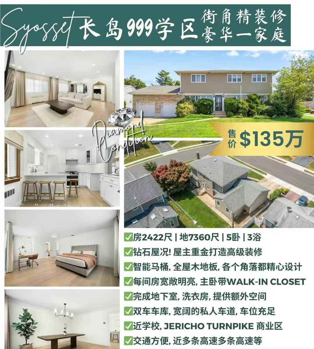 Long Island Syosset NY 长岛塞奥瑟房子出售Long Island NY新上市长岛塞奥瑟房屋出售🆕长岛Syosset 999学区高级感装修街角一家庭