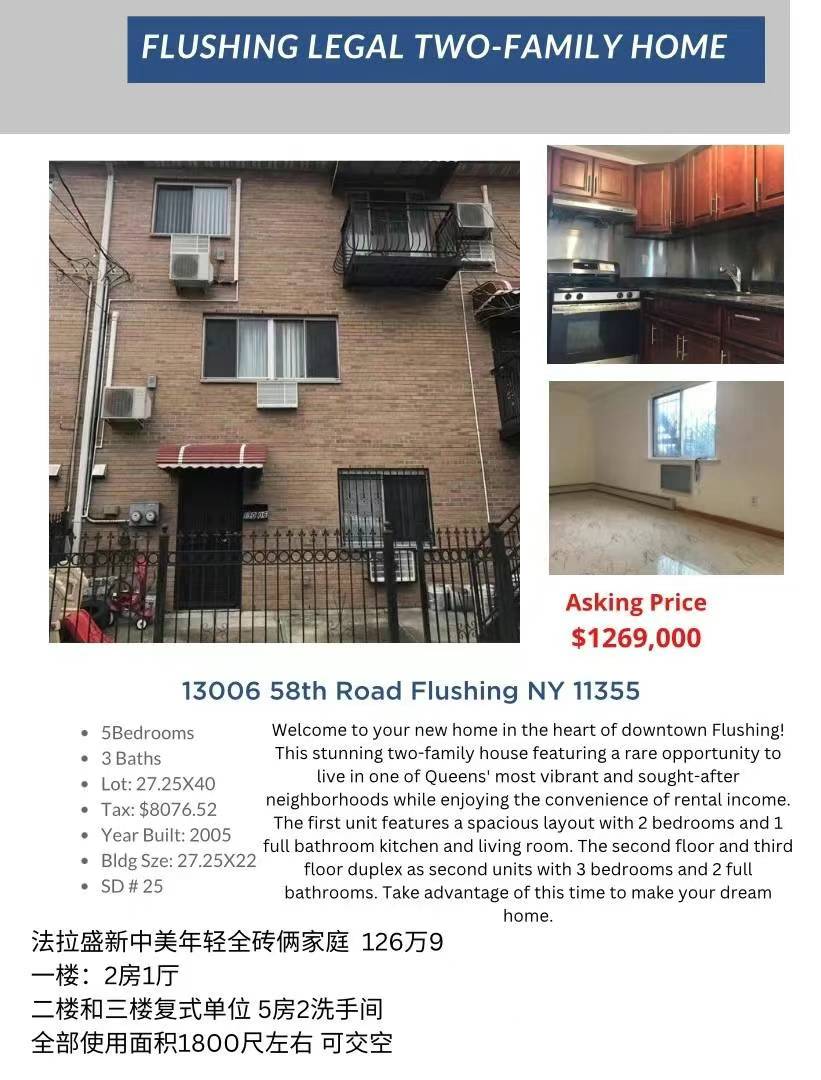 Flushing法拉盛房子出售Flushing NY House for sale新上市法拉盛房屋出售 🔥法拉盛prime location !!🔥