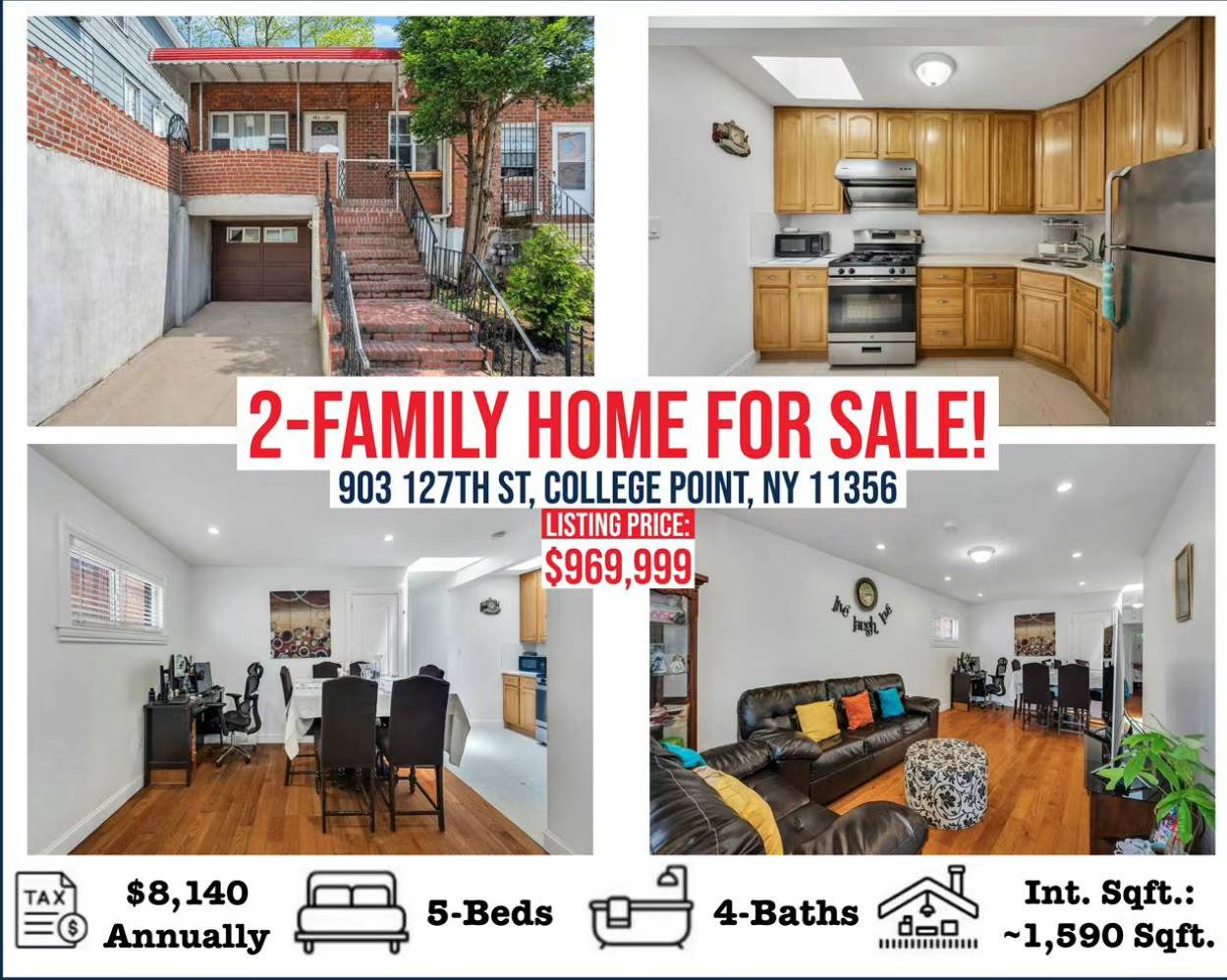🔥College Point大学点房子出售 College Point NY 新上市大学点房屋出售 🔥🔥二家庭house 出售!903 127th st college point 11356