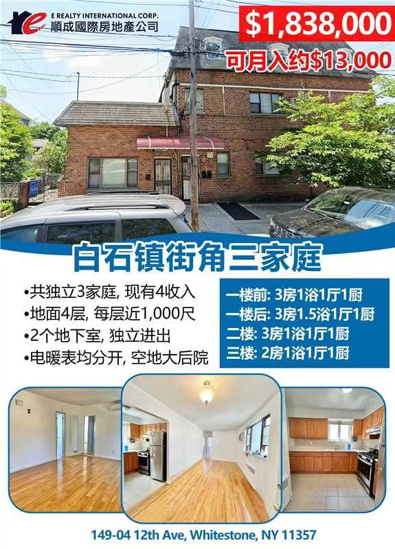 Whitestone白石镇房子出售Whitestone NY新上市白石镇房屋出售🔥最新降价: $183萬8